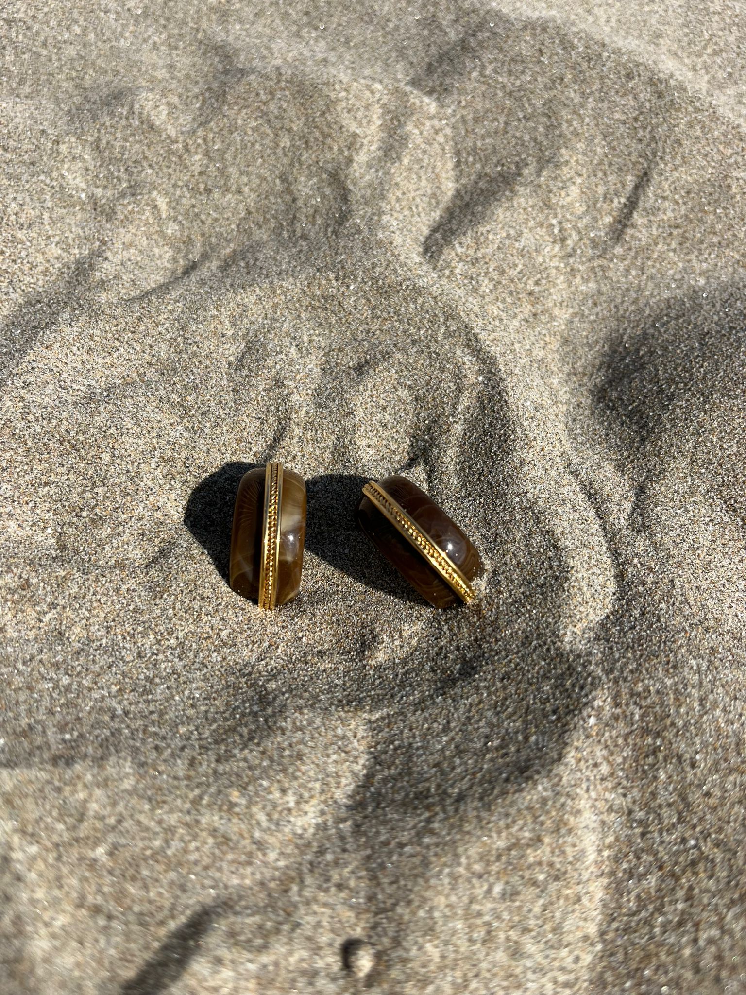 Découvrez ces boucles d'oreilles MELISSA dans leur version marron. En résine et en acier inoxydable, elles apporteront une touche bohème chic à votre look.