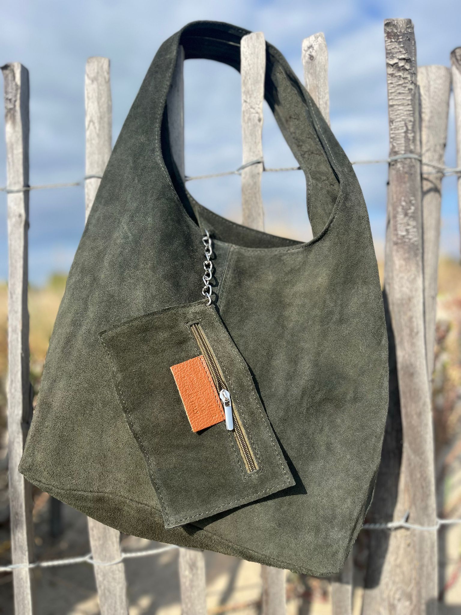 Craquez pour ce sac à main en croûte de cuir disponible dans plusieurs coloris! Ici dans sa version kaki, ce sac hobo est une pépite à petit prix!