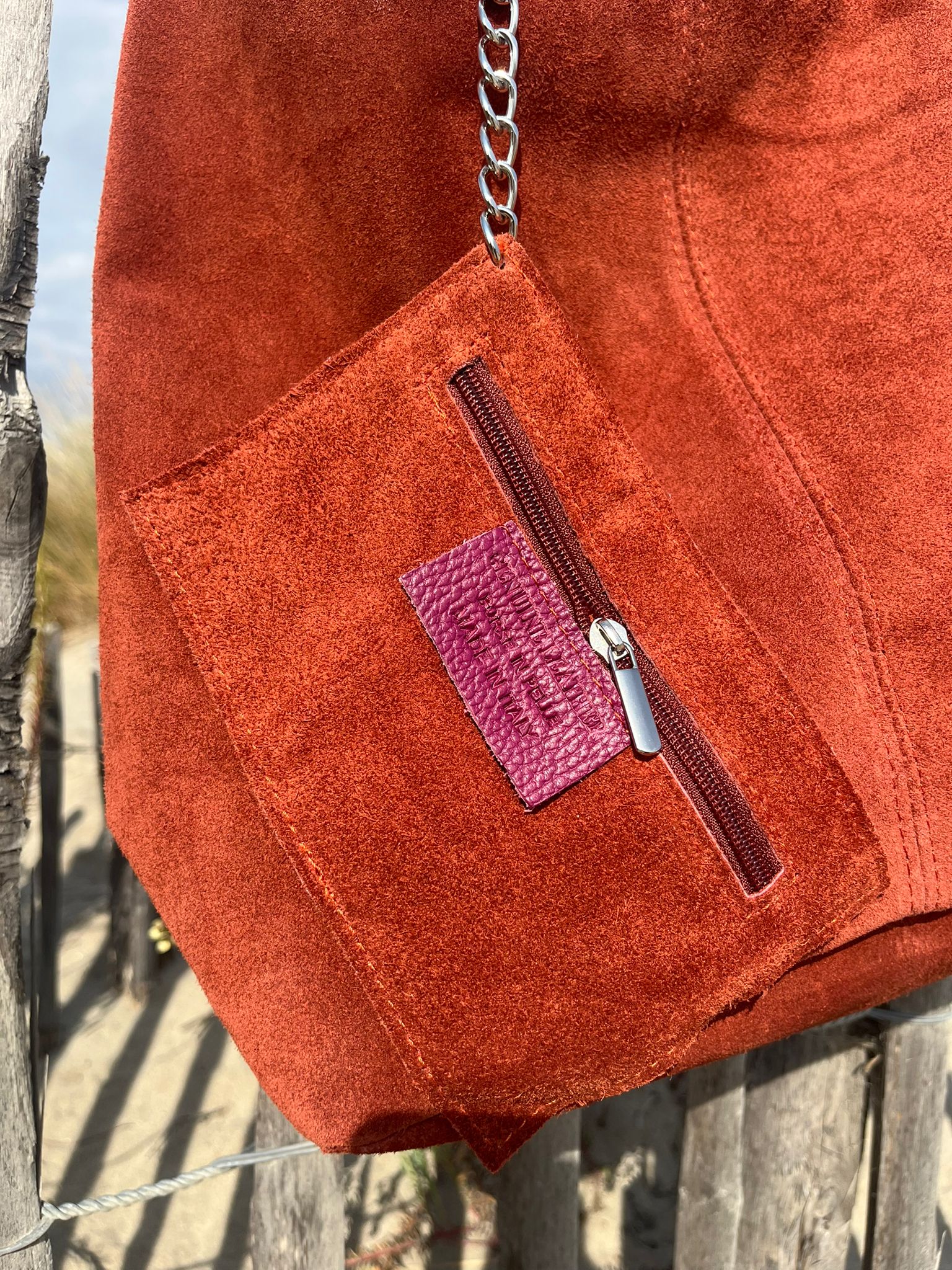 Craquez pour ce sac à main en croûte de cuir disponible dans plusieurs coloris! Ici dans sa version terracotta, ce sac hobo est une pépite à petit prix!